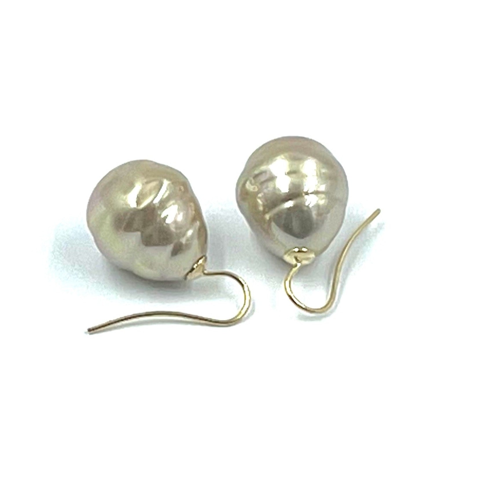 baroque pearl earrings in the color soft gold size large with a gold plated hook0,67 x 0,79...